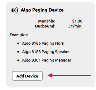 - From the list of devices locate the “Algo Paging Device” and click “Add Device”