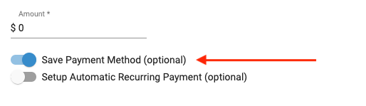 OPTIONAL STEP: If you would like to save the card to use later. Click the toggle for Save Payment Mehod.