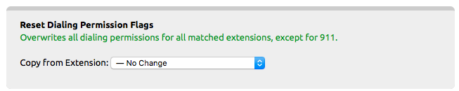 Reset Dialing Permission Flags: Use this to change the selected extensions’ Dialing Permissions to match with the extension selected from the drop-down box.