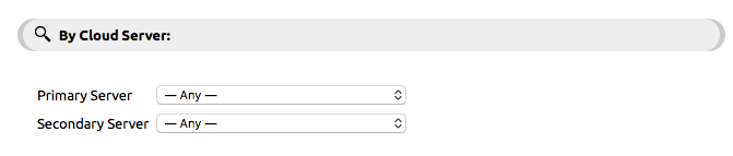 By Cloud Server: Use to select a set of extensions based on its server within the NocTel system. Each physical extension is assigned a primary and secondary server. For both primary and secondary servers, the drop-down box will allow you to select Any, which selects extension on any server or chose from the list of current servers used by your account for selection. Selecting a server will select only extensions that match that server.