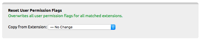 Reset User Permission Flags: Use this to change the selected extensions’ User Permission to match with the extension selected from the drop-down box.
