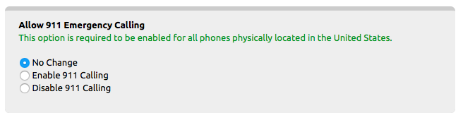 Allow 911 Emergency Calling: Used to change an extension 911 emergency calling permission. Note that all phones physically located in the United States are required to have 911 calling enabled.