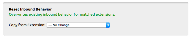 Reset Inbound Behavior: Uses an extension selected from the drop-down box as the template for changing the inbound behavior for the other extensions to match.