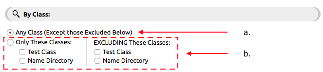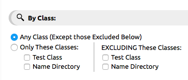 - Only These Classes/EXCLUDING These Classes: Allows you to include certain classes or exclude certain class by clicking the check box next to the classes in the include or exclude list.