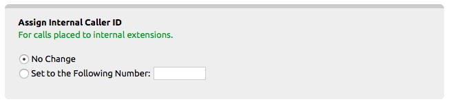 Assign Internal Caller ID: Use to set the extensions internal caller ID to a specific number. This affects calls within the NocTel phone system (like extension to extension calls). This is often useful for IT Helpdesks that wish to mask individual agent extensions and make it seem like they are coming from a lead phone number.