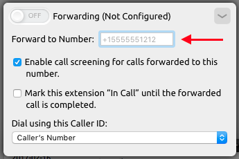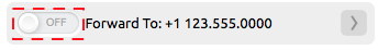 - Click the ON/OFF toggle switch in the top left of the Forwarding area to turn the forwarding feature for the extension on.