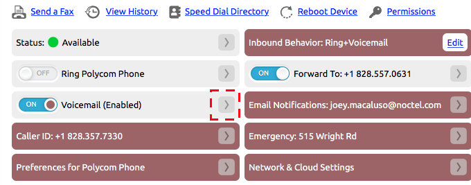 - On the extension’s page locate the voicemail widget, and click > to expand the options.