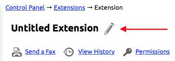 - Click on the pencil icon next to Untitled Extension at the top of the page to give the extension a number and a name.