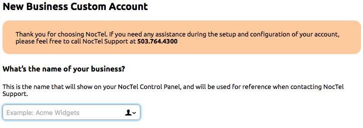 The Business Account should now be created, and your user account linked to it. Now when you log into NocTel, you will be automatically taken to your Business account. You can now add numbers and extensions to your account and invite another user to the account.