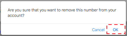 After clicking the “Remove this number” link, confirm that the extension should be deleted by click OK in the new dialog box.