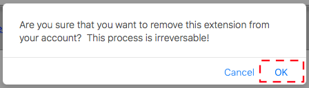 After clicking the “Remove this extension” link, confirm that the extension should be deleted by clicking OK in the new dialog box.