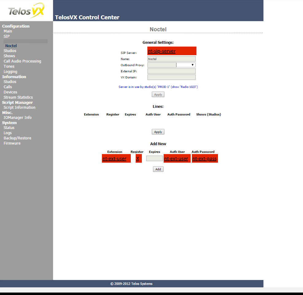 NocTel SIP trunks and NocTel hosted VoIP has been tested and proven to work with the Telos VX Enterprise and Telos VX Prime+ phone systems.