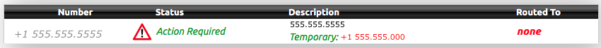 6. You should be redirected to the Numbers page and the new number should be in the numbers list with an “Action Required” status. Click on the number in the list to open its Edit Number page.