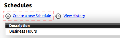- Click the blue “Create a new Schedule” link at the top of the Schedules list.
