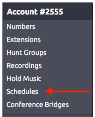 For info on using schedules inside of an extension's inbound behavior please see the article on Time of Day Routing