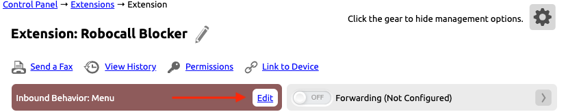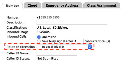 - From the list of numbers in the account, click on the number you wish to add the new robocall blocking prompt.