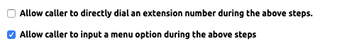- Check the box for “Allow caller to input a menu option during the above steps.”