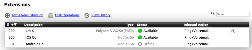- Click on Extensions. Find the Polycom extension that you want to twin the Go extension to in the list or by searching.