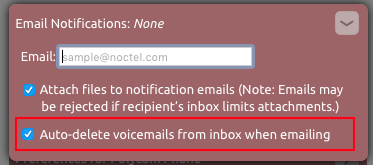 - Click outside the Email Notification area to save the setting. voicemails will now be deleted from the NocTel servers after they are sent to your email service provider.