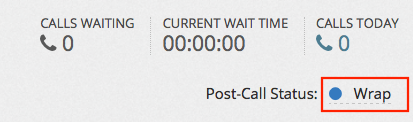 - clicking on the on the current post-call status in the upper-right corner of the Agent Dashboard under the Queue information