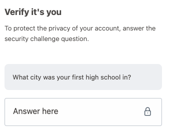 - The screen will change to a verifying identity. If you have additional security questions for your bank account, the pop-up screen will prompt you to answer them. Complete the security question and click Continue.