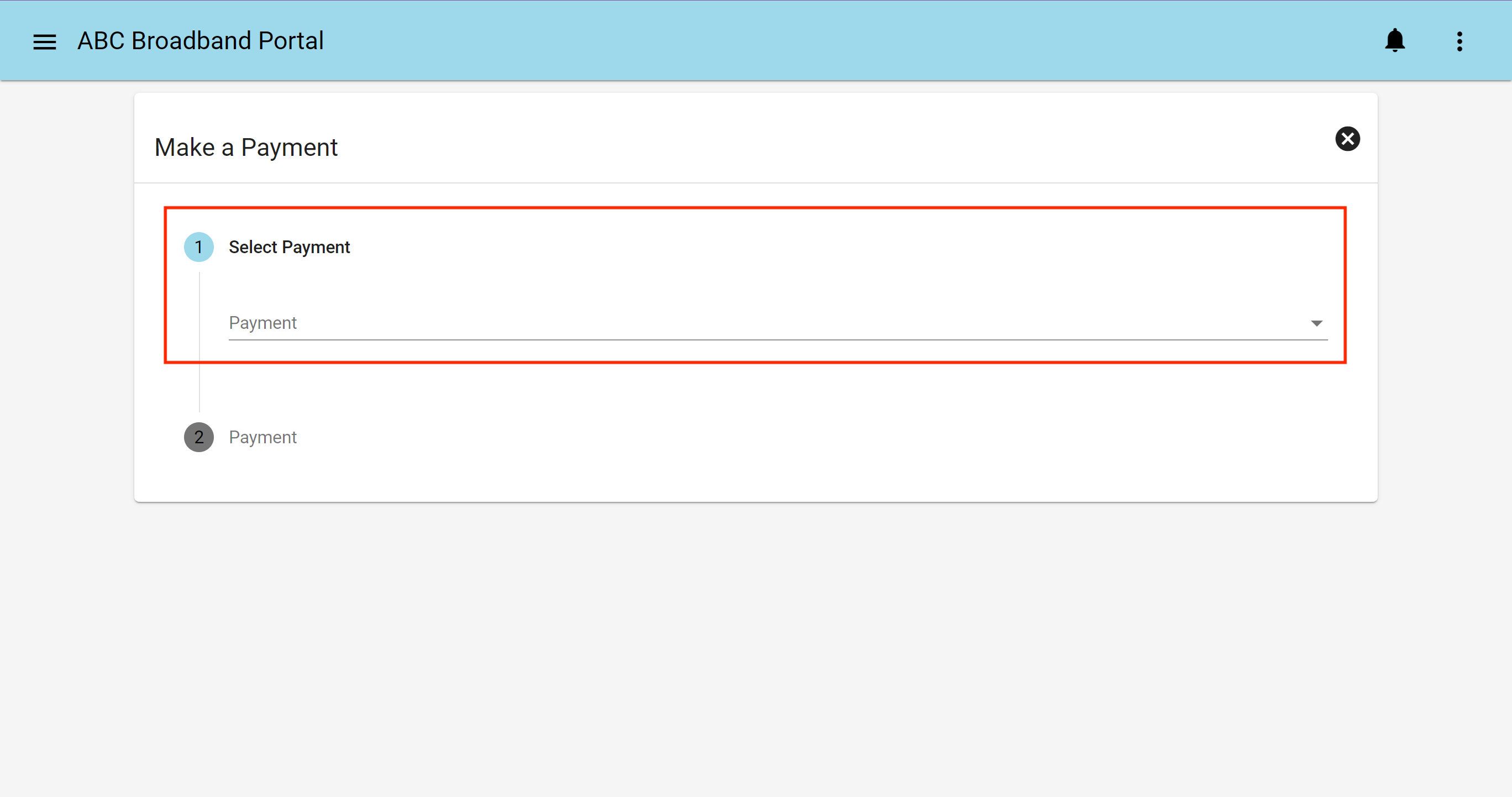 In step 1 of the Make a Payment page, select ACH in the Select Payment dropdown box.
