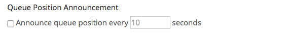 10. Queue Position Announcement is an audio announcement to the caller noting their waiting position in the Queue. To enable, click the checkbox and set a time interval (in seconds) using the text box. The queue announcement will interrupt any playing hold music and return to it when the announcement is finished.  It may be interrupted during playback if an agent becomes available, which ensures that the caller’s position will be answered as quickly as possible.