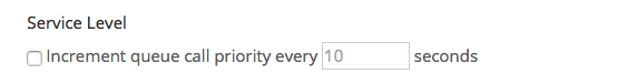 11. A call’s priority within a Queue can be escalated naturally over time using the Service Level option. To enable, check the box under Service Level. In the text box, enter the amount of time (in seconds) that the call should be waiting for before being escalated one level in priority. The call will continue to escalate one level in priority each time the desired time interval expires until the call is answered or it reaches the highest priority.