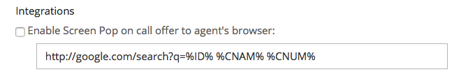 Screen Pops allow for visual information related to the call to be displayed to the Agent. The following example will set up a Google search with the Caller’s Telephone Number and Caller ID Name: