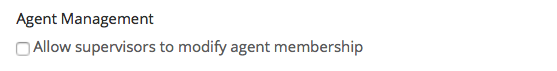 8. For Agent Management options, click the checkbox to allow users with Supervisor access to modify Agent membership (assignment) to the Queue.