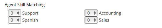 9. For the Agent Skill Matching section used the dropdown boxes next to each listed skill to assign the ideal proficiency level to accept calls from the queue.
